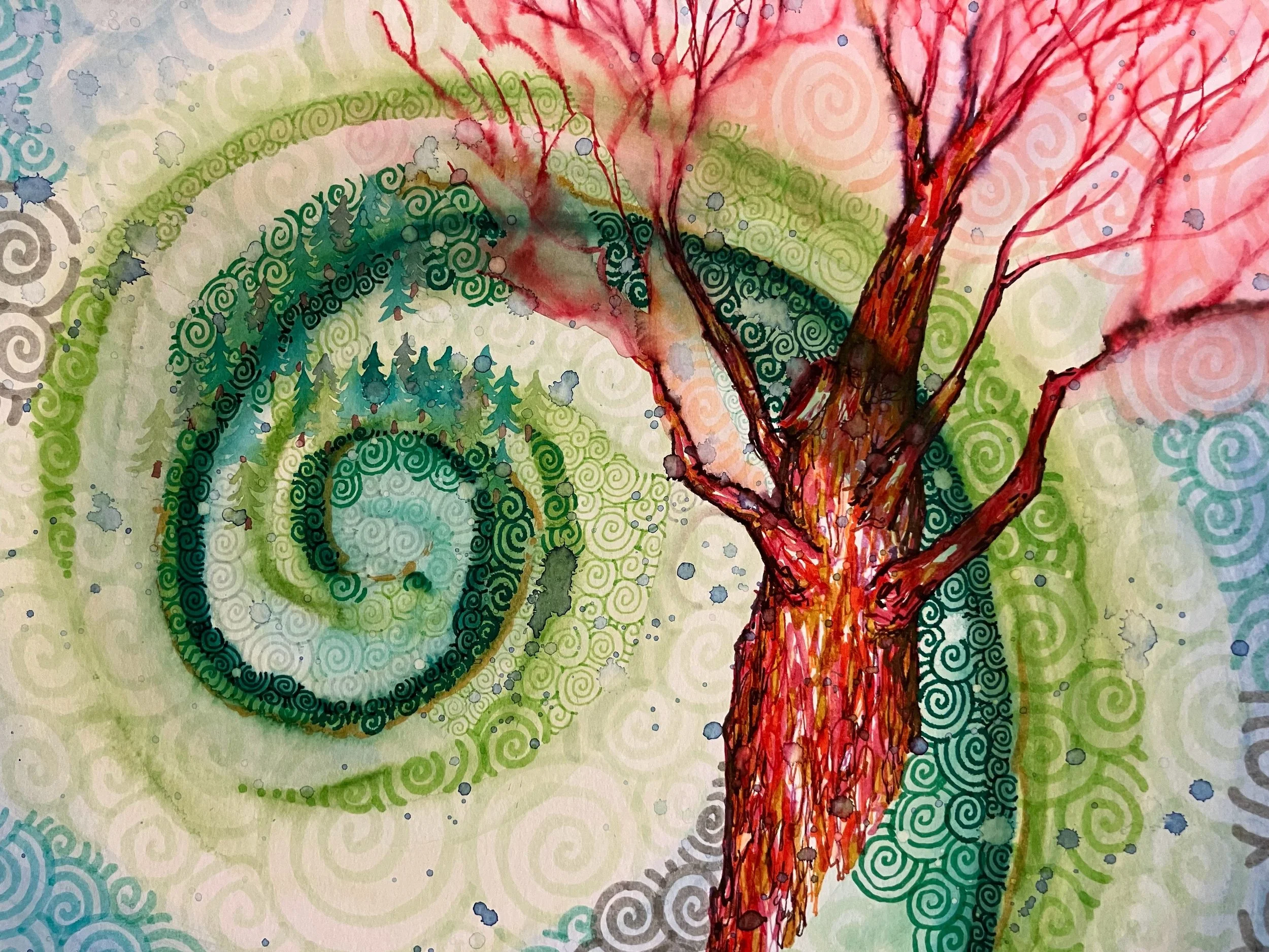 Leo Fortune creates space to Soul Out through their contemporary eco-healing watercolor paintings featuring spirals. Categories: All Originals Book Prints Magnets Stickers Cards All Originals Book Prints Magnets Stickers Cards Alchemizing Shame Print $25.00 That Day There Was A Full Blood Super Moon Print from $25.00 That Fall Feeling Print $35.00 (That Time) I Got You Print $35.00 That Day I Took The Time To Watch Paint Dry Print $35.00 Alchemizing Fear Print $25.00 That Time I Needed A Reminder Print $35.00 Hand Holding Print $35.00 Help Is There Print $35.00 Connection Print from $25.00 That Connection Feeling Print $35.00 Alchemizing Guilt Print $35.00 Sold out Book: ¿Los árboles hablan - los escuchas? Trees Talk - Are You Listening? $25.00 E-Book: Los árboles hablan - ¿Los escuchas? Trees Talk - Are You Listening? $20.00 Spread Queer Joy Print $35.00 Frequency Print $35.00 Wisdom Print from $25.00 Support Print from $25.00 Within and Without Print $35.00 Give Take Print $35.00 Linking Print $35.00 Fae Trio Dance Print $35.00 Fae Light Moss Print $25.00 Fae Night Illumination Print $25.00 Fae Family Sunset Print $35.00 Card Set $30.00 Linking Card $5.00 Perspective Card $5.00 Fae Night Illumination Card $5.00 Fae Northern Lights Card $5.00 Elemental Card $5.00 The Beat Card $5.00 Give Take Card $5.00 Hand Holding Card $5.00 Hand Holding Sticker $2.00 Frequency Sticker $2.00 Perspective Sticker $2.00 Give Take Stickers from $2.00 Linking Stickers from $2.00 Fae Night Illumination Stickers $4.00 The Beat Sticker from $2.00 Faescape Sticker $2.00 Fae Village Sticker from $2.00 Fae Viking Sticker $2.00 Fae Reach Sticker $2.00 Fae Home Light Sticker from $2.00 Fae Moss Sticker $2.00 Fae Family Sticker $2.00 Magnets from $3.00